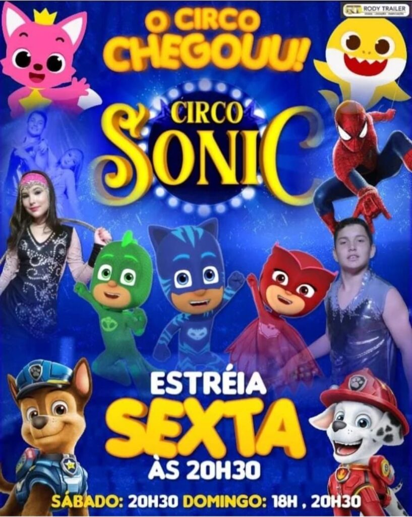 Chegou Circo Sonic na Cidade de Pontalina. Atracões Sábado as 20:30 e Domingo às 18:00 e as 20:30.