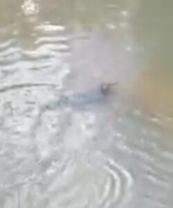 Filhote de Jacaré é visto pegando um sol em um córrego em Caldas Novas, córrego que fica na